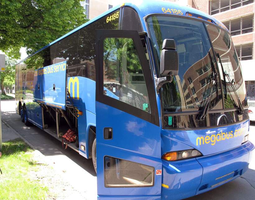 Это и есть место, откуда можете уехать в Айову-Сити. Автобус - супер-комфортный. Мы ехали, не зная печали. Дороги ровные. В общем, если нужно в Айову - Сити, бюджетный турист спокойно может доехать на нем. Доехать можно за 2 часа. Если нужно - сайт мегабуса. Ходит дважды в день: