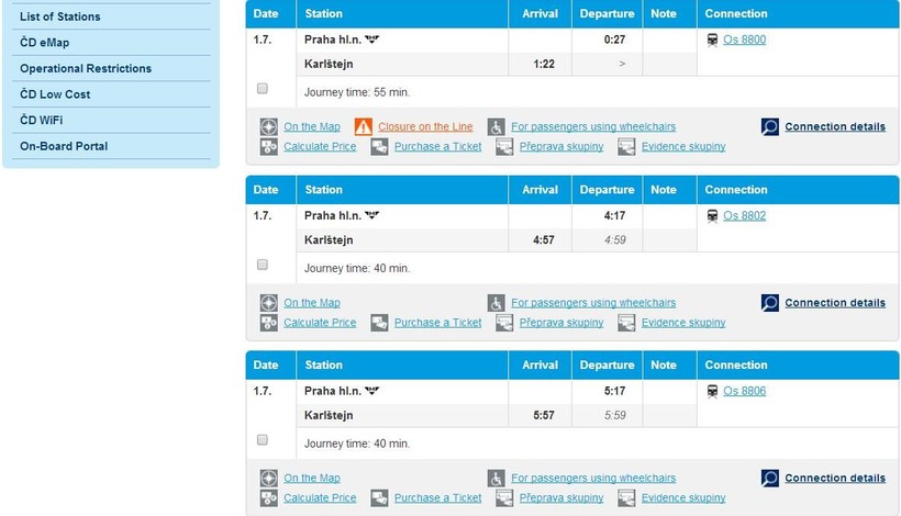 Поездов настолько много каждый день, что я лично не вижу смысла покупать билеты заранее. Ну, разве что, вы не знаете чешского и не хотите объясняться с кассиром или же панически боитесь билетных автоматов. Тогда можно купить билеты через сайт ЖД Чехии.