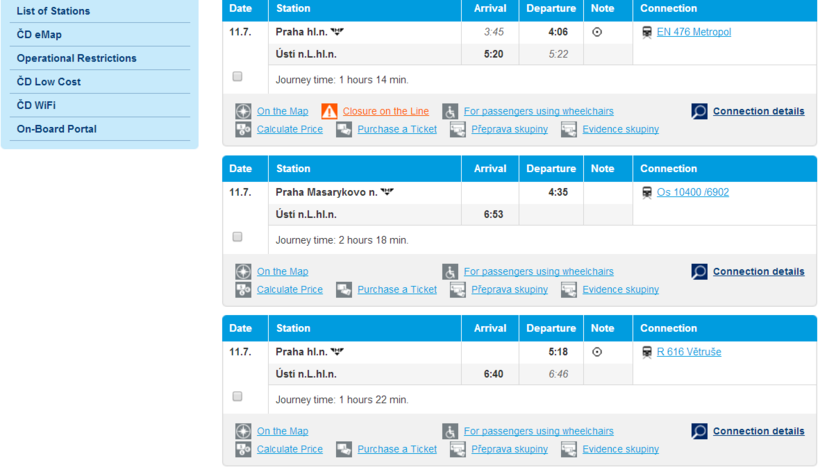 Ниже приведена информация о том, сколько часов вам потребуется, чтобы добраться от Праги до Устей-Нада-Лабема, а также приведена примерная стоимость проезда (средняя цена билета) на том или ином виде транспорта.