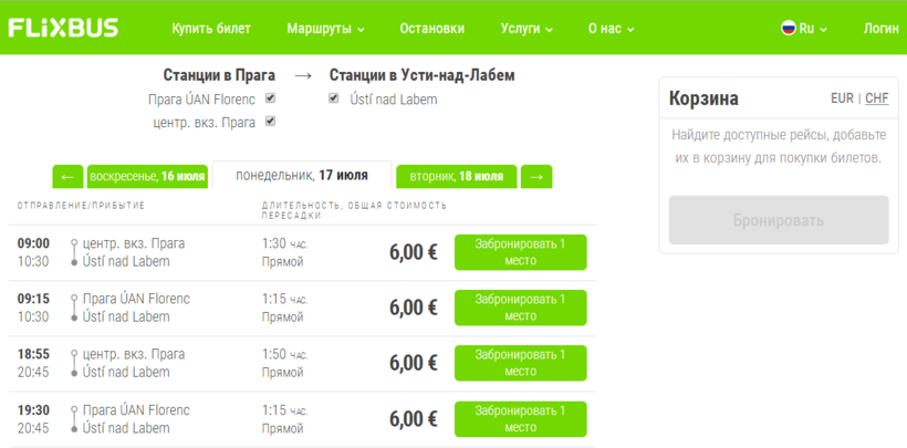 Из Праги в Усти-над-Лабем автобусом Flixbus