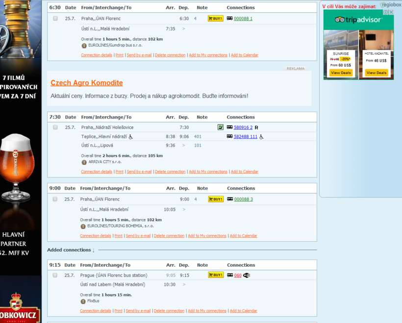 Эти автобусы прибывают на тот же автовокзал в Усти-над-Лабем, что и Фликсбус, а выезжают с автостанции Флоренц в Праге. Их не так уж и много в течение дня: 06:30, 09:00, 13:00 и 18:00, прямых, я имею в виду. Время в пути – чуть больше часа.