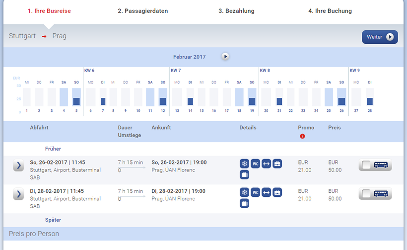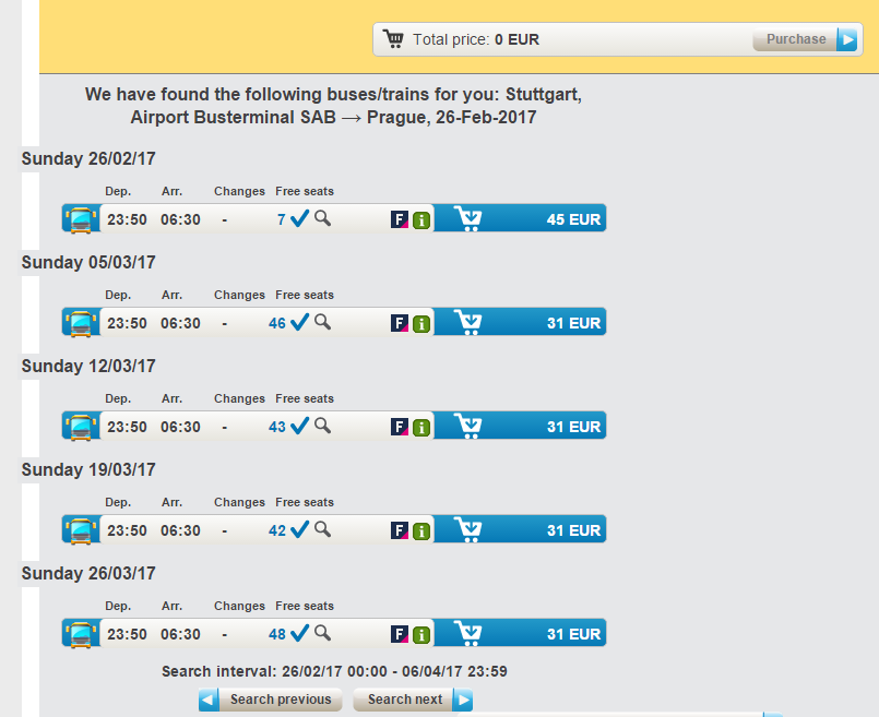 А теперь парочка скриншотов с сайтов перевозчиков: «Regiojet».