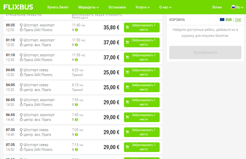 Из Штутгарта в Прагу ходит просто легион автобусов. Есть три компании и я расскажу о них по порядку: