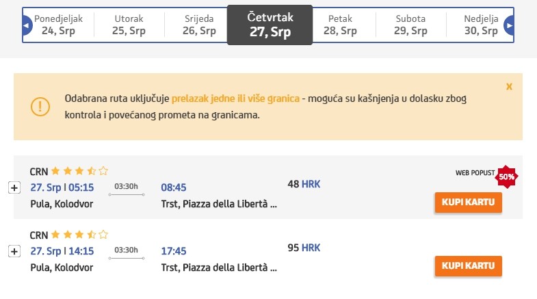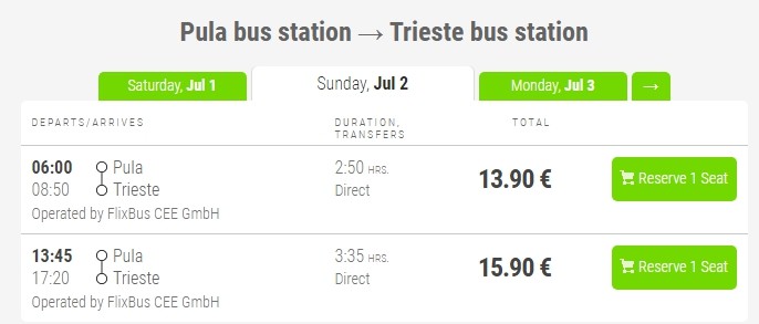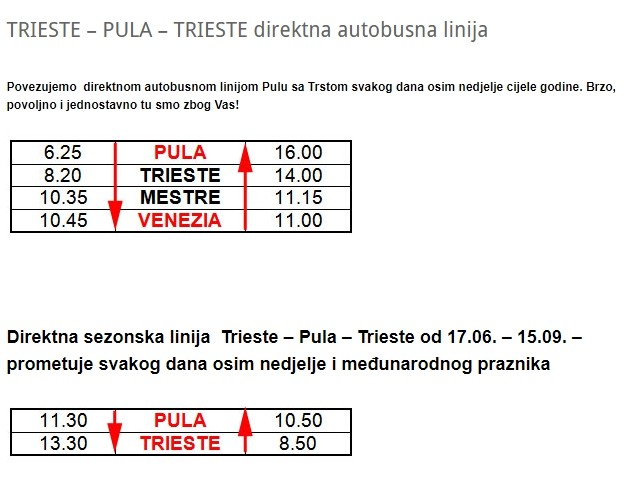 Направление Пула — Триест обслуживает несколько известных в этих краях компаний. В Интернете я нашла аж пять: