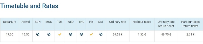 Билет в одну сторону обойдется в 219 хорватских кун (29,53 евро) плюс налог от порта — 10 кун (1.32 евро).
