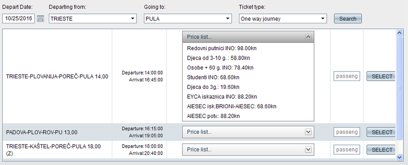 Поездка на автобусе транспортной компании Brioni стоит приблизительно так же – 98 хорватских кун (около 13 евро).
