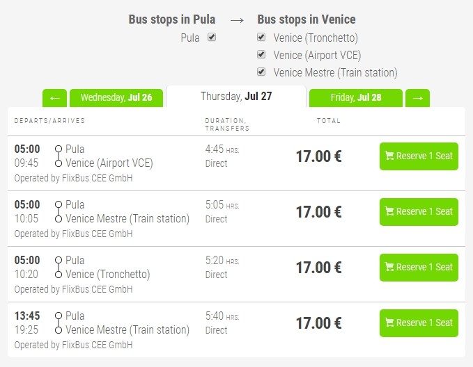 Сначала нужно добраться в Венецию. Из Пулы в этот итальянский город ходит два автобуса.