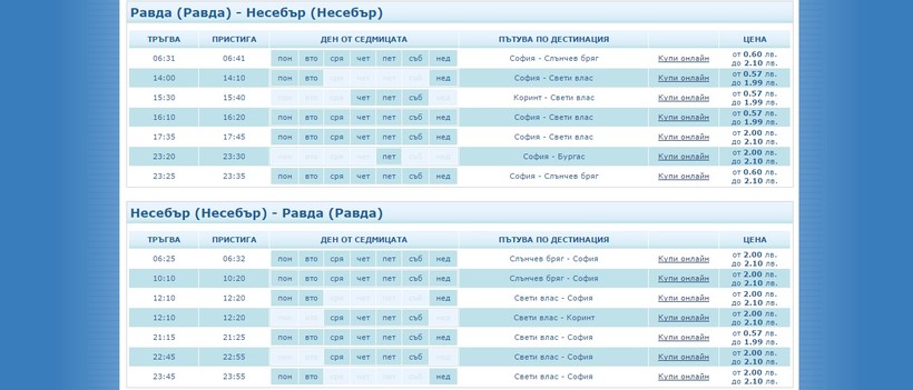 Есть еще несколько транспортных компаний, которые осуществляют автобусные перевозки пассажиров из Равды в Несебр. Вот расписание автобусов Минибус Экспресс.