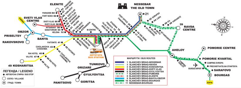 Из Равды в Несебр на автобусе ехать около 10 минут. В этом направлении ежедневно есть автобусные рейсы нескольких перевозчиков. Вот перечень некоторых из них: