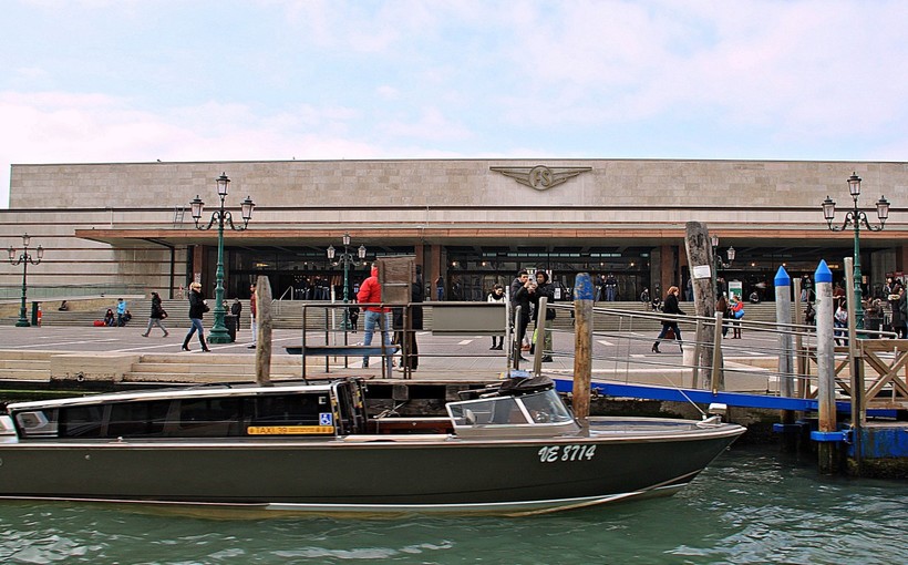 Поезд прибывает на главный железнодорожный вокзал Санта Лючия, расположенный на берегу Гранд Канала.