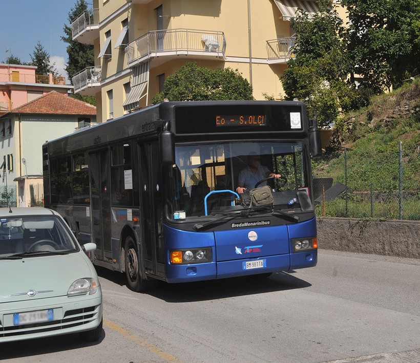 Можно доехать как напрямую, так и подсесть на автобус в Санта-Марии Лигуре. Рейсы по данному направлению обслуживает компания ATP Esercizio, автобусы которой имеют вот такой вид: