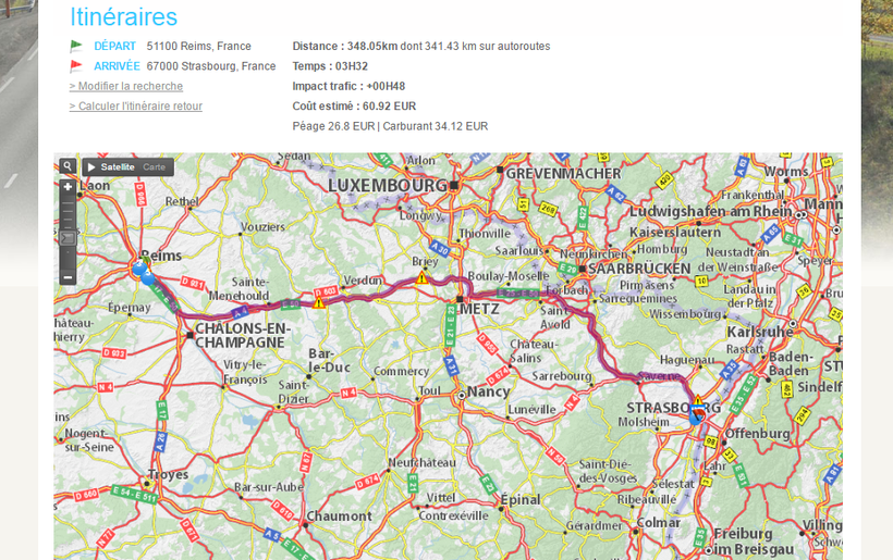 Маршрут поездки очень прост, ведь ехать с самого Реймса в Страсбург нужно будет по трассе А4.