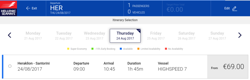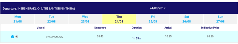 Билеты на паром продаются на сайте Seajets и Hellenicseaways. Слышала, что можно купить на причале, но в день отплытия билетов никогда нет. Обычно все места раскупают за 2-3 недели. Кроме туристов, билеты выкупают и турагентства, организовывающие экскурсии с Крита. Кстати, в случае шторма рейс может быть отменен, но это бывает редко.