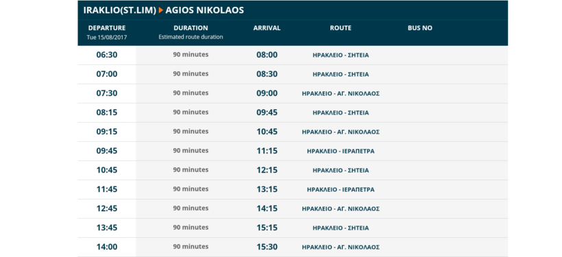 Маршрут Ираклион — Агиос Николаос обслуживает уже другой перевозчик.