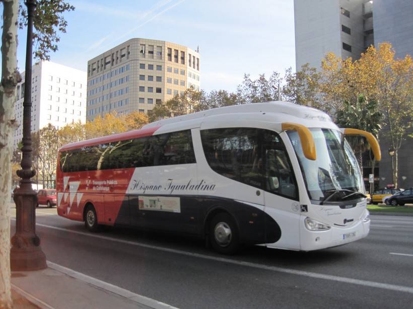 Есть в распоряжении путешественника и вариант с автобусом. Обеспечивает перевозки в данном направлении транспортная компания Hispano Igialadina. Автобусы данной компании выглядят так: