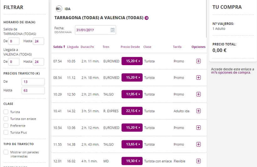Билет до Таррагоны обойдется в 2 евро, а в Валенсии - от 13 евро.