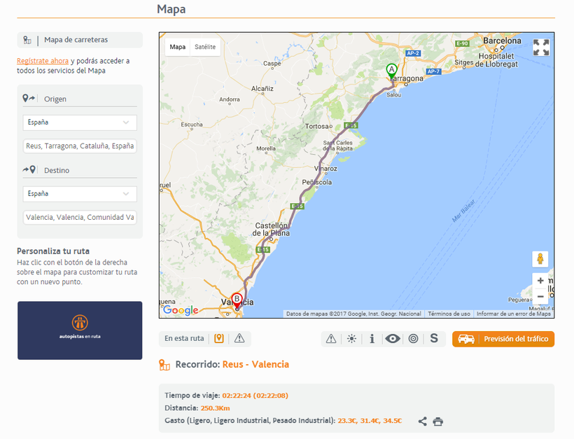 Из Реуса надо выехать на трассу С-14 и ехать до развилки и поворота на Е-15, которая и приведет в Валенсию.