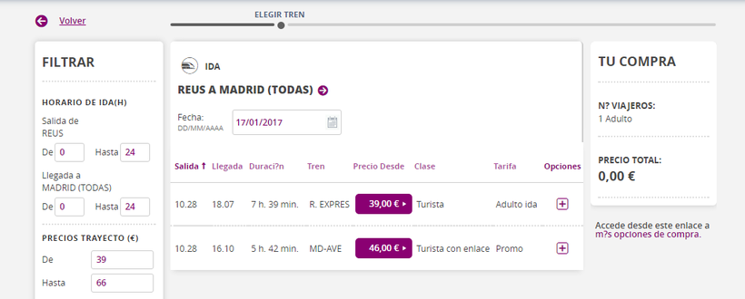 Ниже приведена информация о том, сколько часов вам потребуется, чтобы добраться от Реуса до Мадрида, а также приведена примерная стоимость проезда (средняя цена билета) на том или ином виде транспорта.