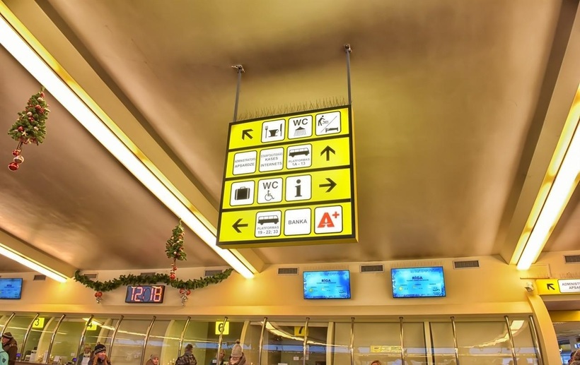 В холле первого этажа расположены электронные табло с расписанием рейсов, кассы транспортных компаний, аптека и сувенирные магазинчики.