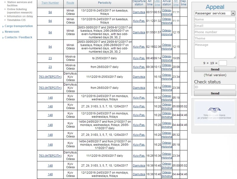 - На поезде. Стоимость проездного документа – от 115 гривен (270 рублей).