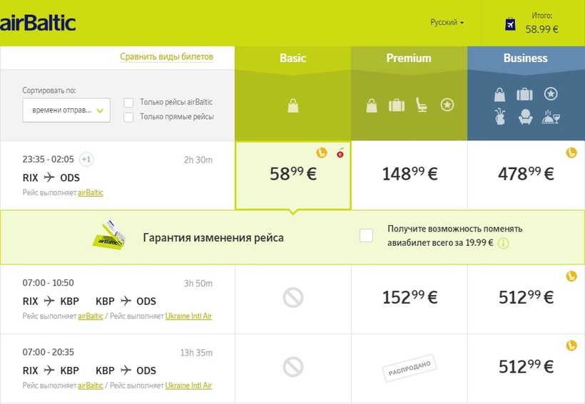 - Билет на рейс из Риги в Одессу - 63 евро.