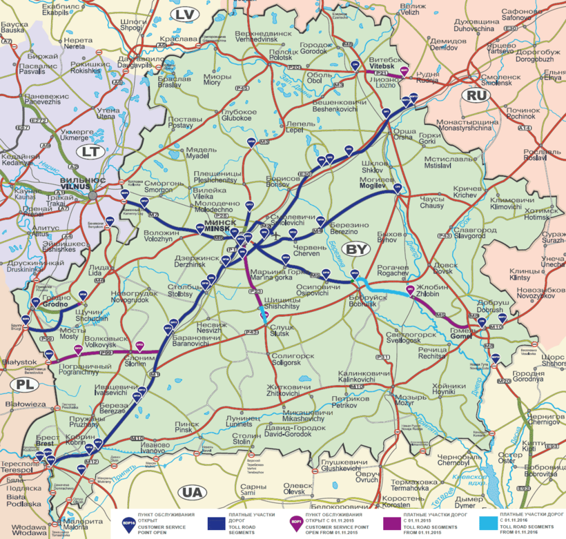 Из Риги в Одессу на автомобиле будете ехать почти целые сутки. Вот маршрут поездки.Проезд по дорогам Латвии, Литвы и Украины бесплатный. А вот белорусы за поездку по своим автомагистралям требуют оплату. Вот карта платных дорог Белоруссии.