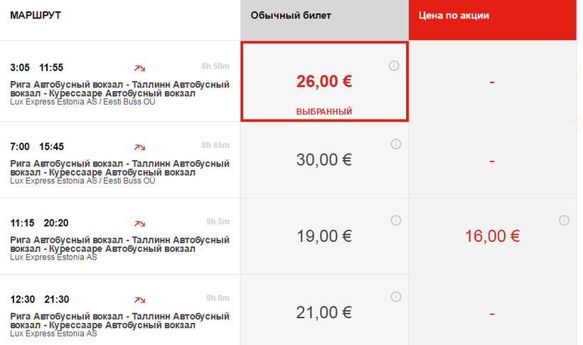 Отправление автобусов проходит с Рижского международного автовокзала.
