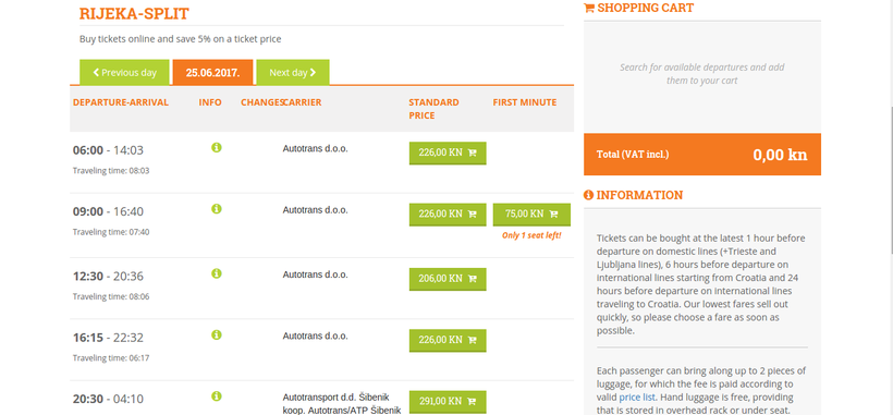 Все рейсы на скриншот также не поместились, поэтому велкам на сайт Croatia Bus, там все подробно рассказано. Автопарк этого оператора по классу и комфортабельности идентичен автопарку компании Autotrans.