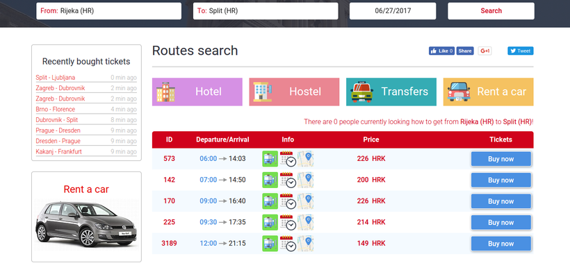 Есть 3 автобусных оператора, которые предлагают рейсы в данном направлении. Все автобусы (вне зависимости от компании) отправляются с автовокзала Риеки, расположенного вот тут: