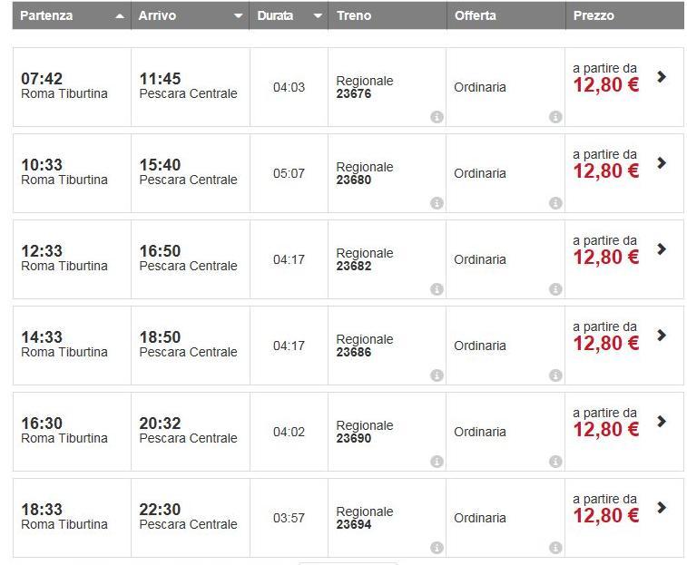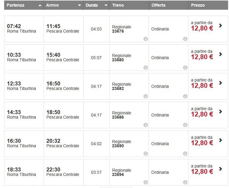 Взрослый билет Рим-Пескара обойдется в 12,80 евро.