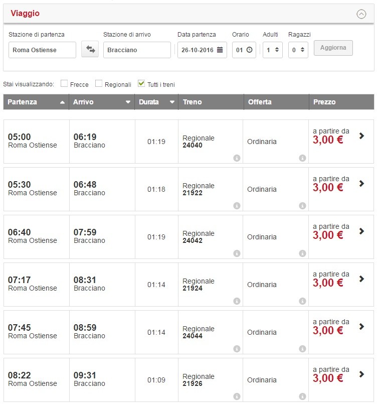 Билеты на региональные поезда можно заранее не покупать, хотя при желании это можно сделать на сайте Trenitalia. Поезда ездят часто, цена не зависит от даты покупки, поэтому билеты можно приобрести в терминалах на вокзале. Если вы запланировали однодневную поездку, купите сразу и обратный билет, он не привязан к месту и поезду. Билеты на региональные поезда в обязательном порядке нужно прокомпостировать в специальных ящиках желтого или зеленого цвета. Как купить билеты на сайте и в терминале, как выглядят компостеры вы узнаете из этой статьи.