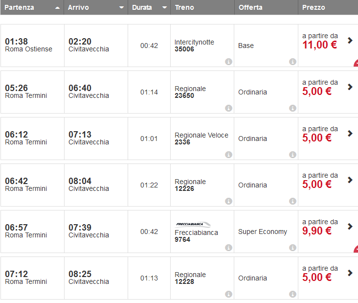 Вообще составы между Римом и Чивитавеккьей курсируют практически круглосуточно, выезжая каждые 20-30 минут, поэтому проблем с дорогой возникнуть не должно.