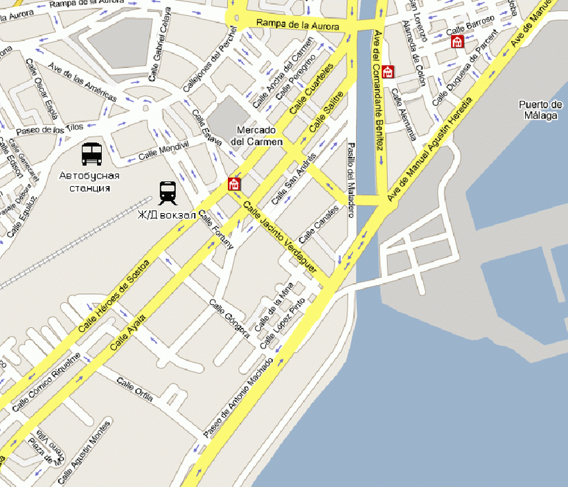 Итак, я решила начать с автобусов, так как разветвленная сеть маршрутов связывает все курорты Коста-дель-Соль. То есть, Малага и все другие курортные города между собой связаны и автобусы, грубо говоря, ходят по кругу из одного курорта в другой или есть прямые рейсы из одного курорта в другой. Должна так же отметить, что поездки на автобусе относительно недорогие и, если вы хотите сэкономить, то можно взять этот вариант за основной, хотя, есть варианты еще дешевле. Главный транспортный узел побережья Коста-дель-Соль находится в Малаге, на фото ниже видно, где именно располагается автобусный вокзал.