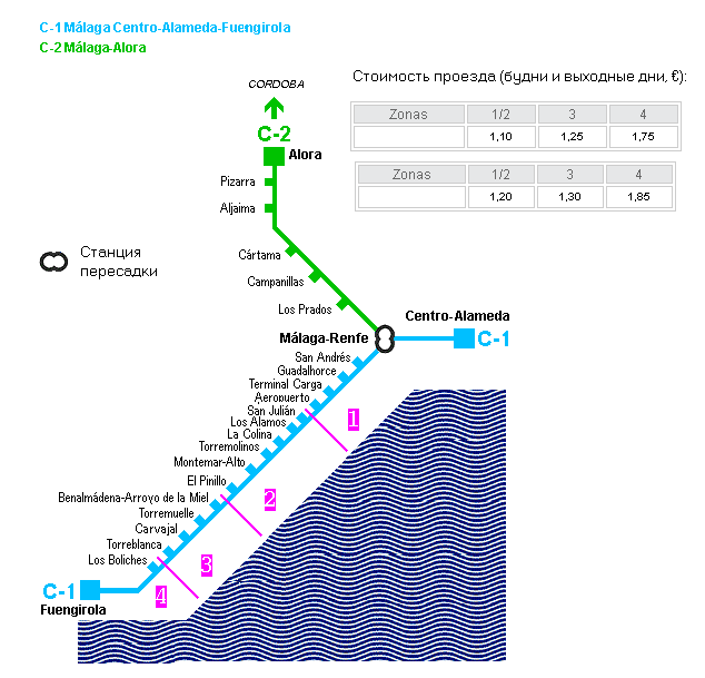 - C1 – эта линия соединяет Малагу и Фуэнхироллу;