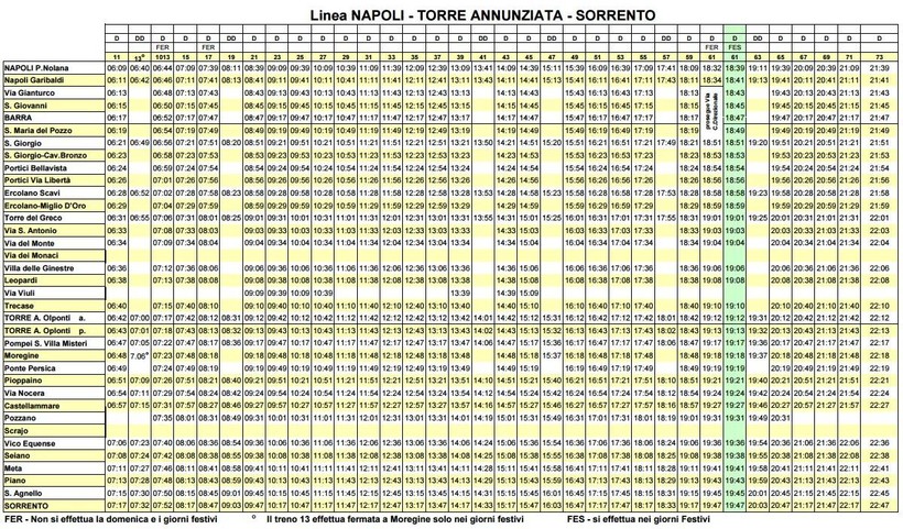 Дальше нужно купить билет в кассе до Меты за 4 евро 50 центов и сесть в электричку местного значения. Ее расписание не найти на общем сайте итальянских железных дорог, можно изучить его по этой ссылке. Поезда ходят с 06:11 до 21:41 каждые 5-30 мин, в пути от Неаполя до Меты нужно будет провести 40-60 мин. Как раз можно успеть на последнюю электричку, если приезжаете в Неаполь на автобусе Eurolines.