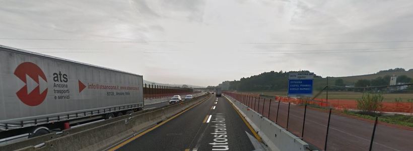 Поворот выполнен через двухуровневую развязку. Вскорости будет еще одна развязка, и после нее по уже знакомой дороге SS-16 нужно ехать до Анконы, никуда не сворачивая.