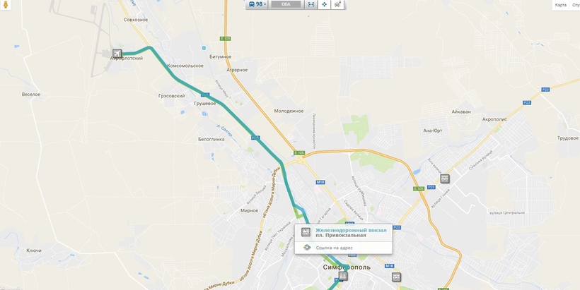 От аэропорта отправляются маршруты №115 и 98, курсируют они с 6 утра до 22 вечера. Выходить нужно на остановке «Привокзальная площадь» или «ЖД Вокзал». А далее на Автостанции «Курортная», которая расположена прямо на площади, пересаживаться на автобус до Ялты.
