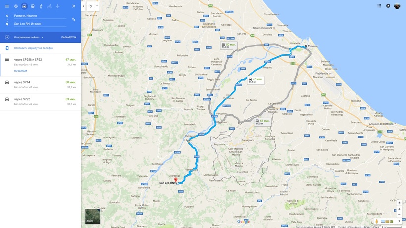 Римини — Сан-Лео — маршрут на карте