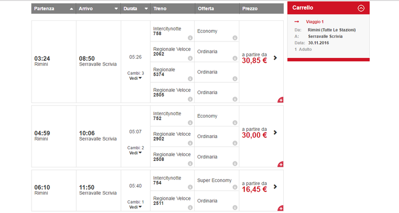 Из Римини в Серравале добраться можно только с пересадками. Первый поезд отправляется в сторону Серравале в 03:24, последний – в 17:17. Но на самом деле поездов не так много, как кажется на первый взгляд. В дороге нужно будет провести порядка 5-5,5 часов.