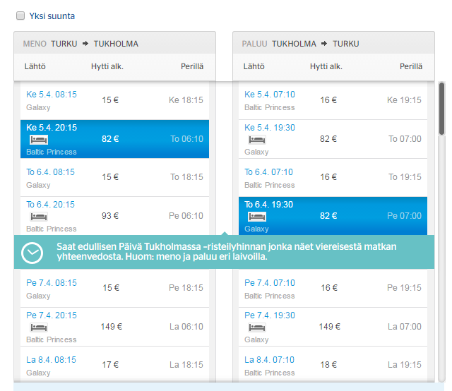 На сайте финской железной дороги можно подробно посмотреть график отправок, веб портал я укажу ниже. Кстати, если надумаете, путешествовать именно таким способом, то ехать надо к железнодорожной остановке Turku Satama, что находится в ста метрах от терминалов, откуда и выезжают паромы. Расписание ж/д транспорта подстроено под график отправок паромов.