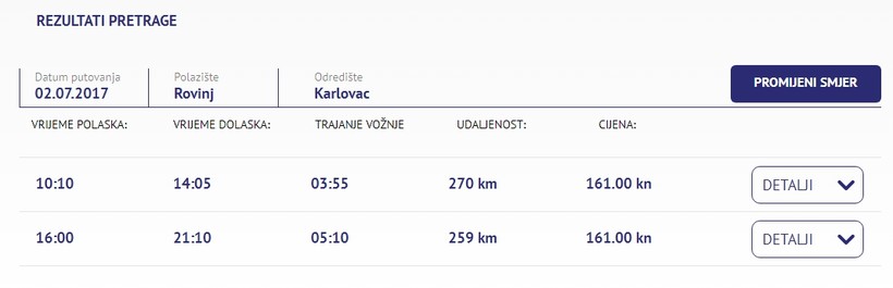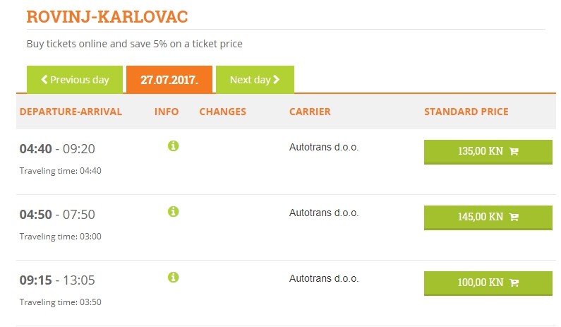 Теперь перейду к общественному транспорту. Расскажу вам об автобусах. Так как железнодорожного сообщения между этими городами нет, то единственным общественным транспортом, что курсирует по маршруту, являются автобусы. Но есть еще один не очень приятный момент — прямого сообщения между Ровинем и национальным парком Плитвицкие озера нет, ехать надо через Карловац. Другого варианта нет.