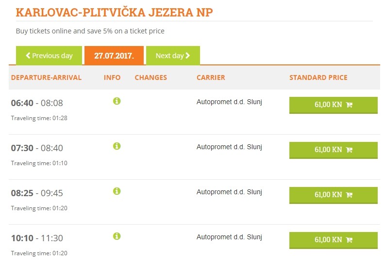 Маршрут до Плитвицких озер обслуживают перевозчики:
