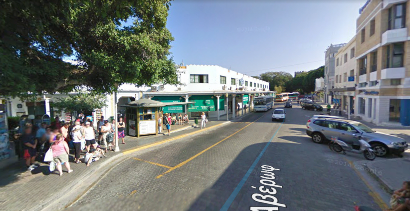 Поездка в Фалираки начинается с родосской автостанции. Она находится совсем рядом с центром города на Averof, 2. Выглядит так: