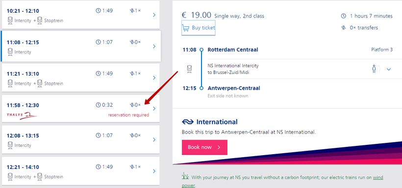 Есть один нюанс, нужно покупать два разных билета, сперва Роттердам – Антверпен, затем Антверпен – Брюгге. С приобретением билетов через Интернет возникли небольшие сложности – сайт голландских железнодорожников почему-то не принимает к оплате карты выпущенные в России. В результате через Интернет удалось купить билеты только на бельгийский участок пути (покупали тут), а на поезд до Антверпена мы приобретали билеты в кассах ЖД вокзала Роттердама.