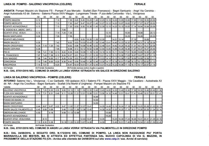 Отправляются автобусы от остановки Vinciprova (это рядом с железнодорожным вокзалом). Прибывают же на остановку Pompei Mazzini. Есть и другие остановки, с ними можно ознакомиться в расписании.