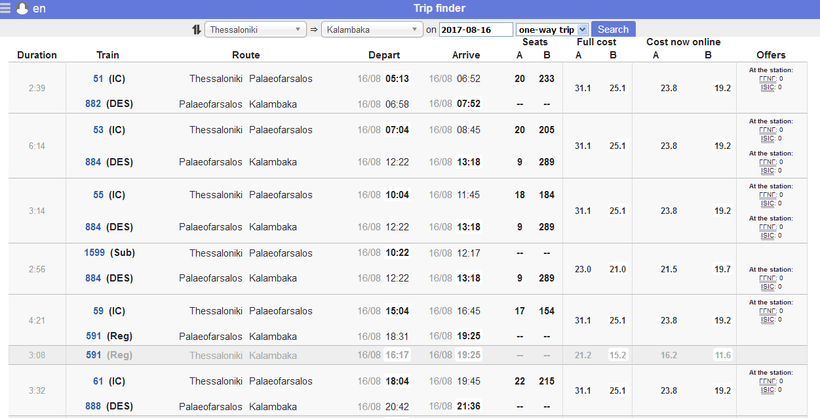 Приобрести билет можно на сайте греческих железных дорог. Портал поддерживает английский язык, сам по себе не слишком сложный, поэтому особых трудностей возникнуть не должно.