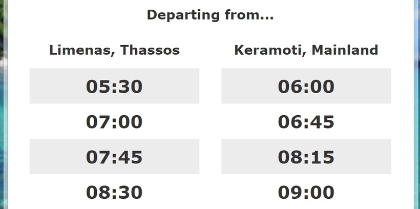 С порта Керамонти на Тасос курсирует около двух десятков паромов в день. Но количество и интервал движения в, большинстве случаев, зависят от дня недели.