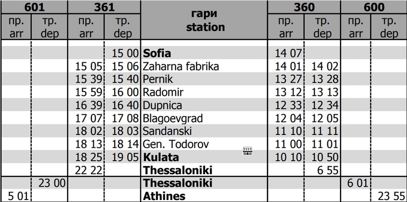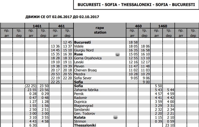 Одним из первых вариантов проезда между этими городами, который я нашла, был железнодорожный транспорт. Правда, пришлось немного порыться в Интернете, ведь я сначала пользовалась сайтом греческой железной дороги, а там расписания движения таких поездов нет. Хорошо, что подруга подсказала воспользоваться веб страницей болгарской жд, где в разделе «международные линии» я и нашла график курсирования поездов по направлению Салоники — София.