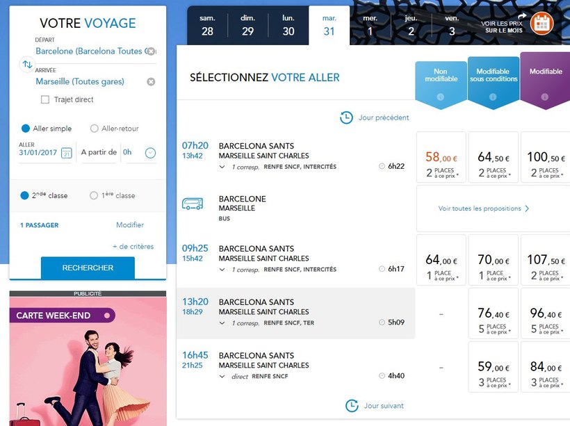 Из Барселоны в Марсель доступны как рейсы с пересадками в Монпелье (отправление в 07.20, 09.25, 13.20) и один прямой (стартует в 16.45).Прибытие в Марсель на вокзал Saint-Charles (Square Narvik) через практически пять часов.