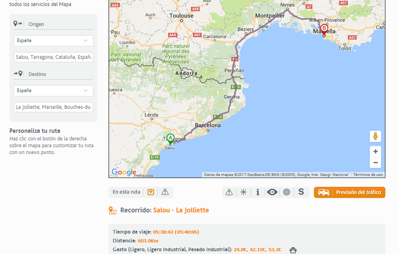 С ветерком мы проехали все 600 км за восемь часов. Можно, конечно, было добраться и быстрее, но мы делали несколько остановок на заправках и у кафе, чтобы пообедать.Маршрут нашей поездки я вам по трассам описывать не буду, потому что в любом случае вы возьмете с собой навигатор, как сделали мы. Все таки иностранное государство, для неопытных туристов поездка просто по карте и названиям трасс может стать проблемой)Скажу честно, не ожидала что в Испании и Франции такие крутые трассы, которые защищены отбойниками, дорожное покрытие ровное, широкие полосы, ну просто класс. Но перед поездкой рекомендую вам подробнее ознакомиться с особенностями парковки и вождения по испанским дорогам, вся инфа доступна тут.Правда, есть один минус, за проезд по автобанам этих стран нам пришлось заплатить почти 25 евро, ведь они здесь почти все платные.